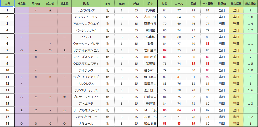 ナミュールが一番手になるが、大差ない浮上馬で、どの馬にもチャンスある。