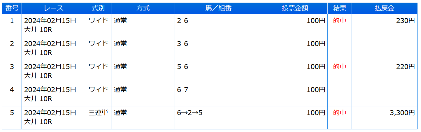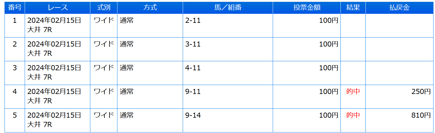 画像は本日の地方競馬での購入履歴です。
