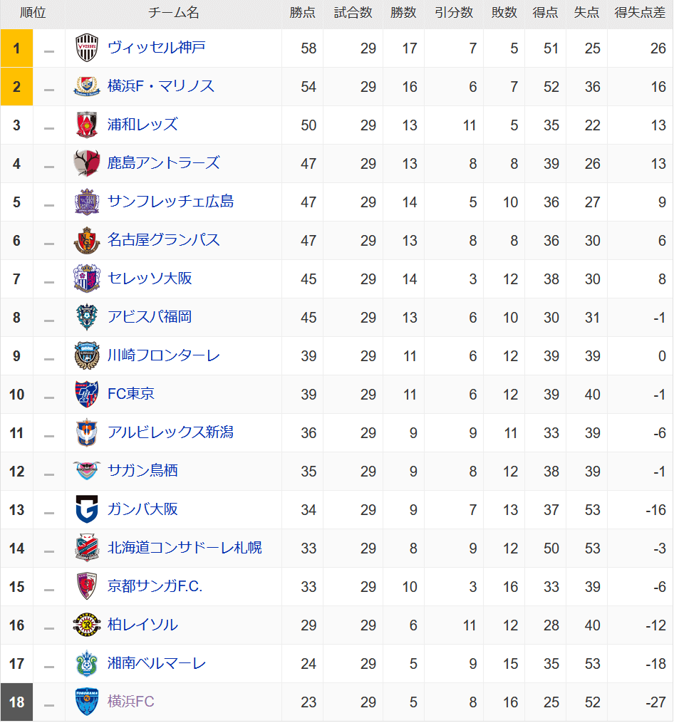 首位のヴィッセル神戸や、横浜Fマリノスなどに勝利するも、
